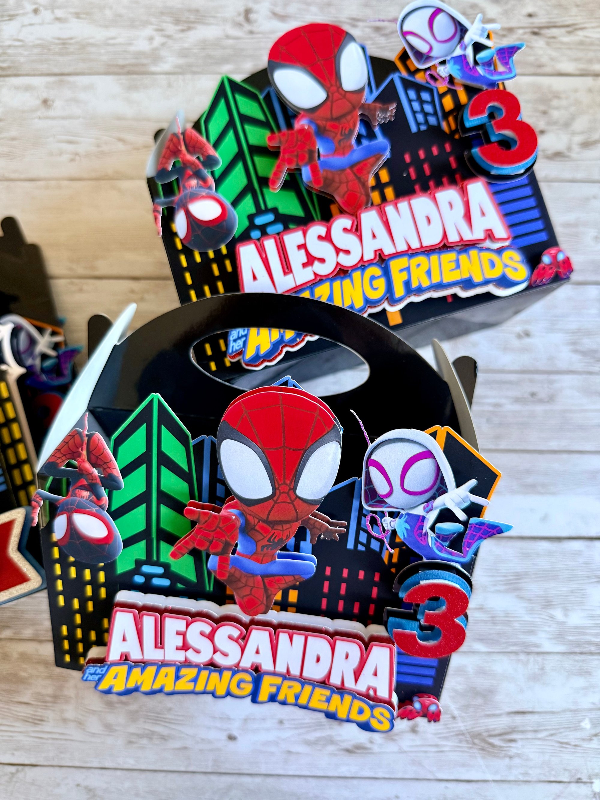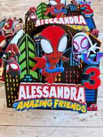 Make your party memorable with our Spidey and his friends favor boxes! Personalize each box with your kid's name and age, giving them a wonderful memento of the special day. An easy way to make your party extra special for your little ones!